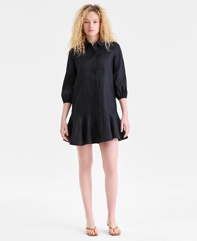 Charter Club Women's 100% Linen Flounce Shirtdress, Created for Macy's