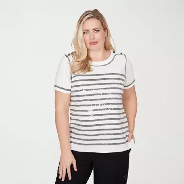 Alfred Dunner Port Side Womens Crew Neck Short Sleeve T-Shirt