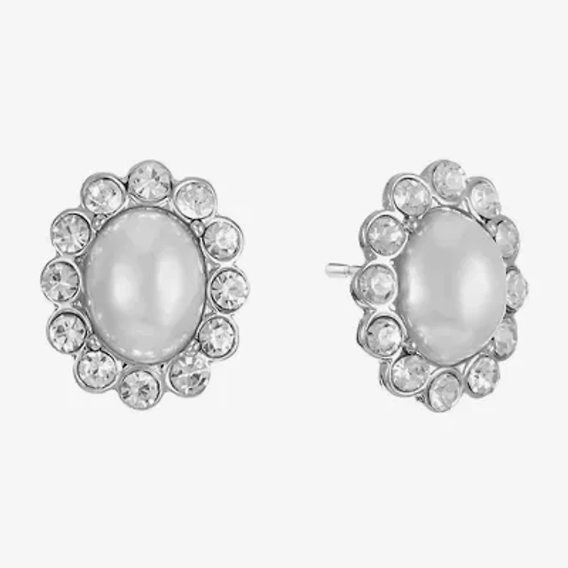 Monet Jewelry Timeless Silver Tone Halo Womens Glass Simulated Pearl Oval Hypoallergenic Drop Earrings