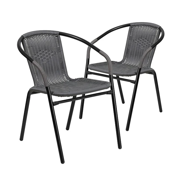 Set of 2 Patio Stackable Dining Chairs with Armrests Garden Deck
