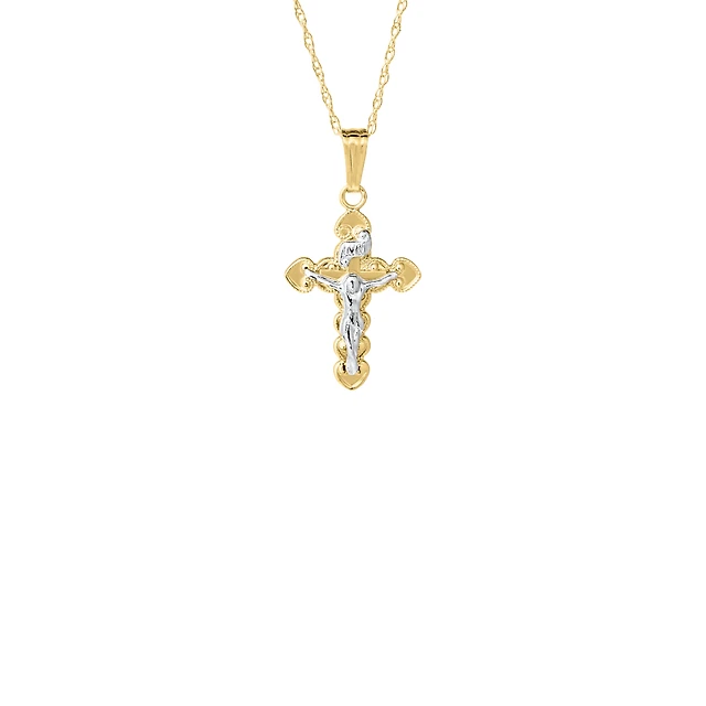17MM Solid Gold Crucifix Two Tone Kids Necklace
