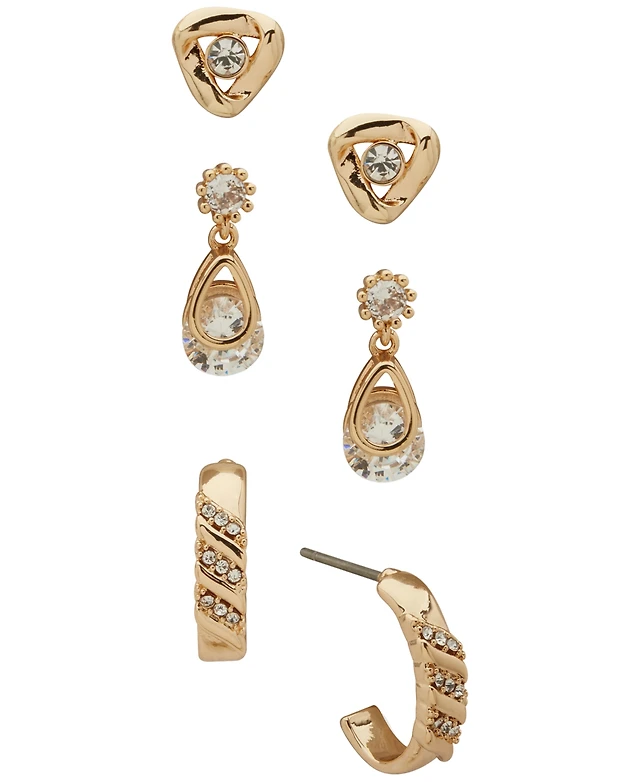 Anne Klein Gold-Tone 3-Pc. Set Pave Stud Earrings