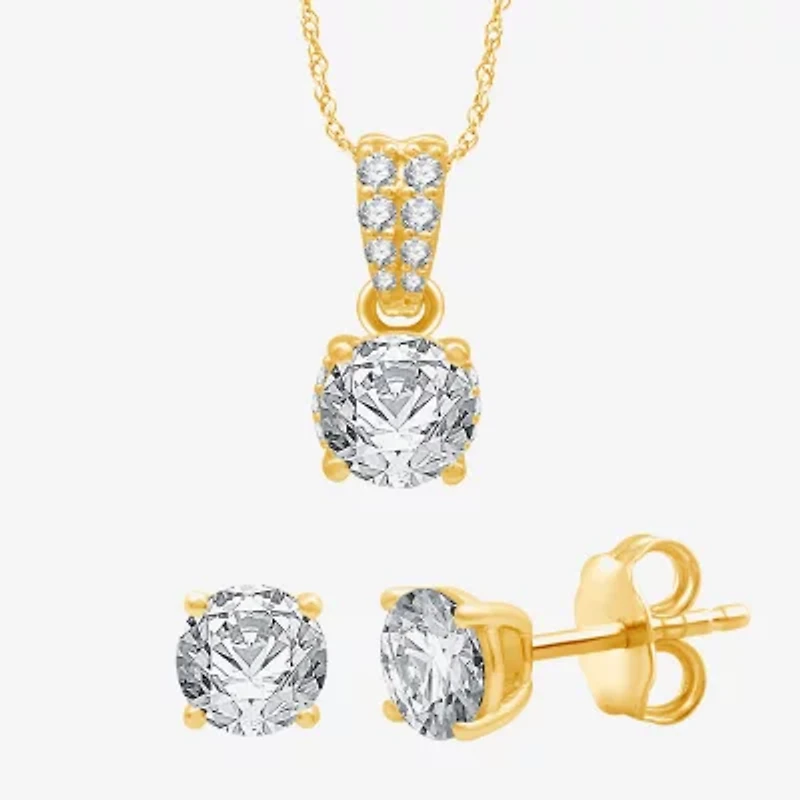 This stunning jewelry set will lend a polished elegance to any outfit. Made from 10K Yellow Gold, the set includes a pair of solitaire stud earrings and a matching pendant necklace set with Lab-Grown Diamonds.