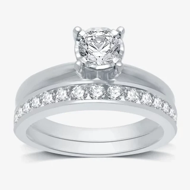 Womens 1 CT. T.W. Natural White Diamond 10K Gold Round Solitaire Bridal Set