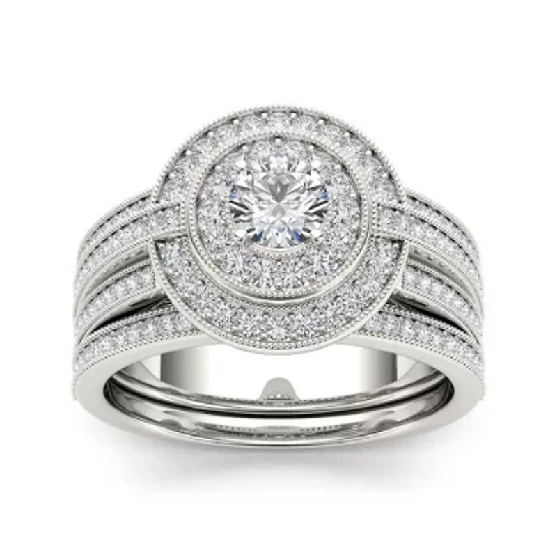 1 CT.T.W. Natural Diamond 14K White Gold Bridal Ring Set