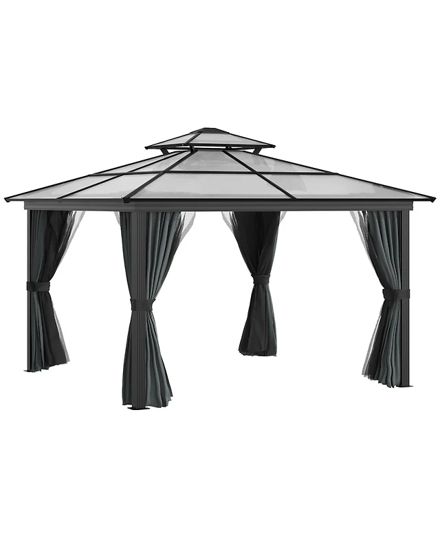 Outsunny 10' x 12' Hardtop Patio Gazebo, Netting Curtains,