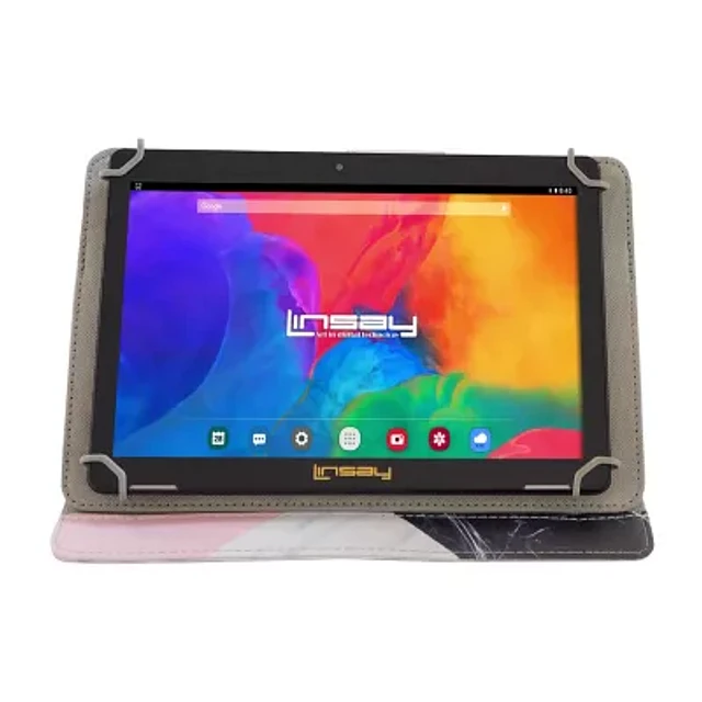 Linsay 10.1"Octa Core 256GB Storage Android 15 Tablet with Rainbow Marble Case
