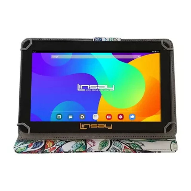 Linsay 10.1 X22 Octa Core 256gb Storage Android 15 Tablet With White Leather Case