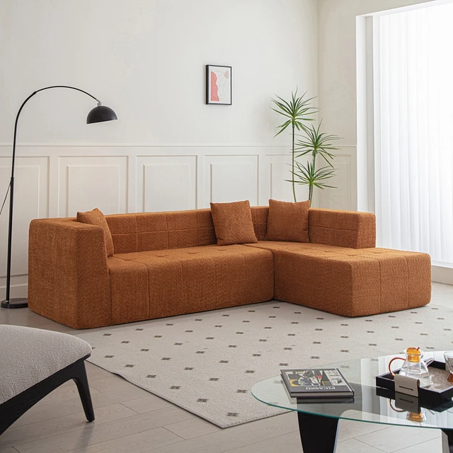 105.5" Modular L-Shaped Sectional Floor Couch, Deep Seat Tufted Comfy Sofa set with Chaise for Living Room