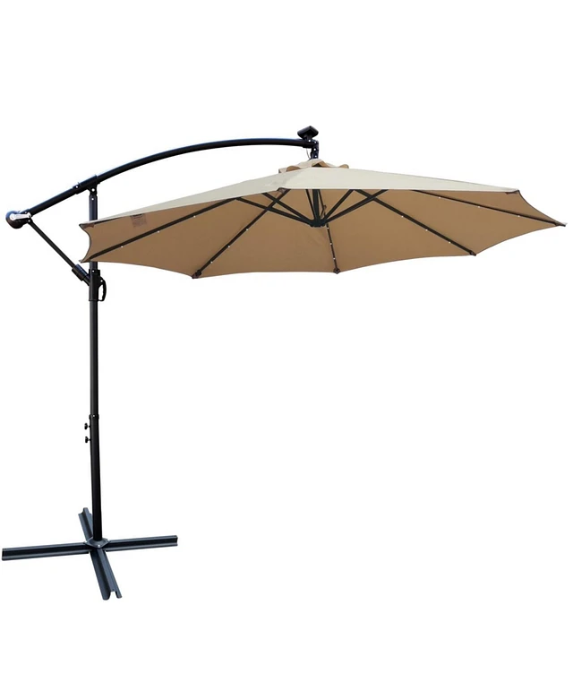 10FT Cantilever Solar Powered 32LED Lighted Patio Offset Umbrella Outdoor