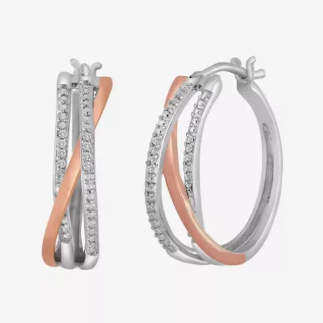 1/6 CT.T.W. Natural Diamond 10K Rose Gold Hoop Earrings