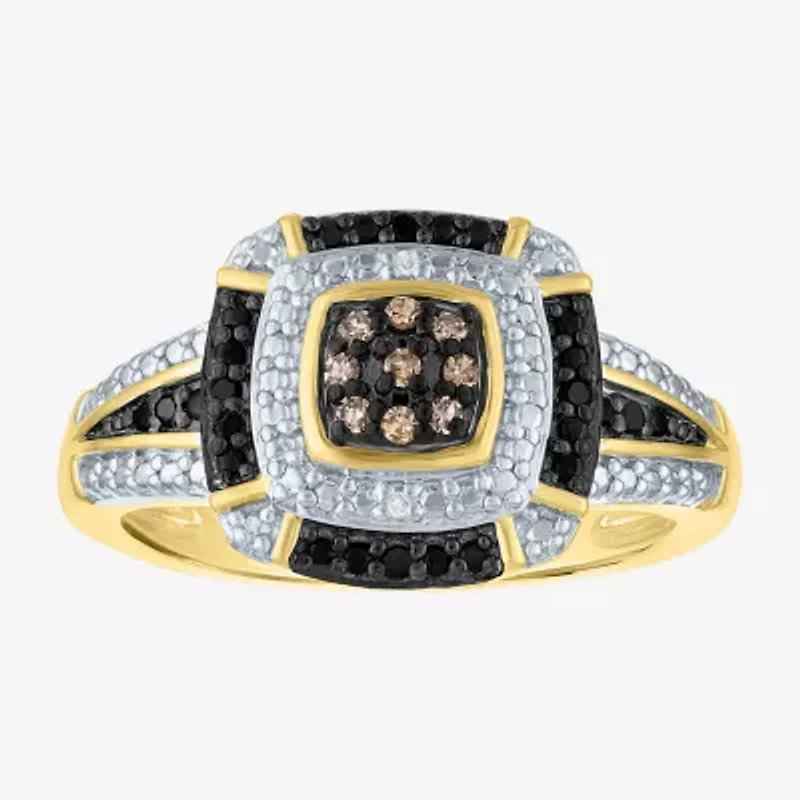 1/10 CT.T.W. Natural White, Champagne and Color-Enhanced Black Diamond Ring