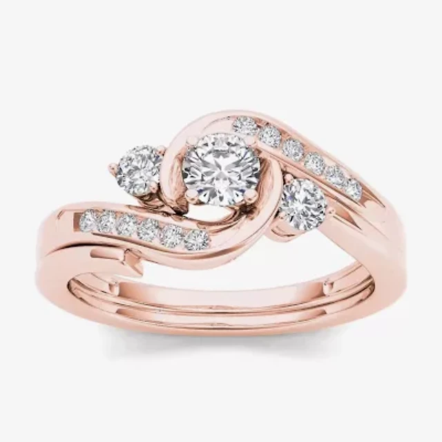 1/2 CT.T.W. Natural Diamond 10K Rose Gold 3-Stone Bypass Ring Set