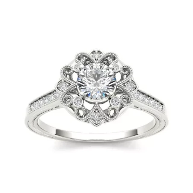 1/2 CT.T.W. Natural Diamond Halo 10K White Gold Engagement Ring