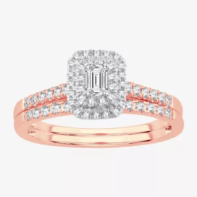 Womens 1/2 CT. T.W. Natural White Diamond 14K Gold Cushion Side Stone Halo Bridal Set