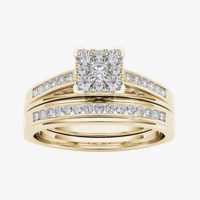 1/2 CT.T.W. Natural Diamond Square 10K Yellow Gold Bridal Ring Set