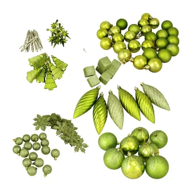 125ct Green Shatterproof 3-Finish Tropical Christmas Ornaments 5.5'' (140mm)