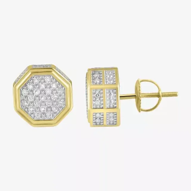 Men's Brown Diamond Square Cluster Stud Earrings (1/3 ct. tw) in 10k Gold
