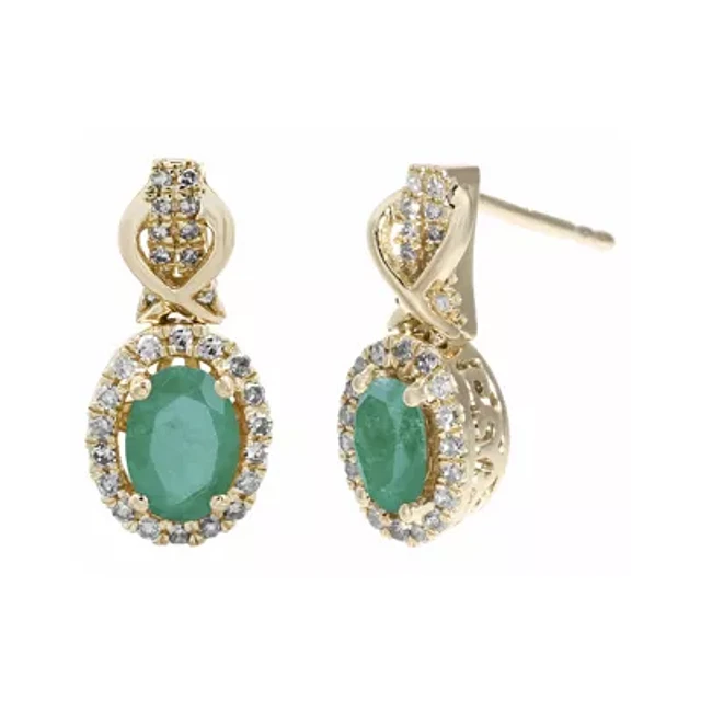 1/4 CT. T.W. Diamond and Genuine Emerald 10K Yellow Gold Drop Earrings