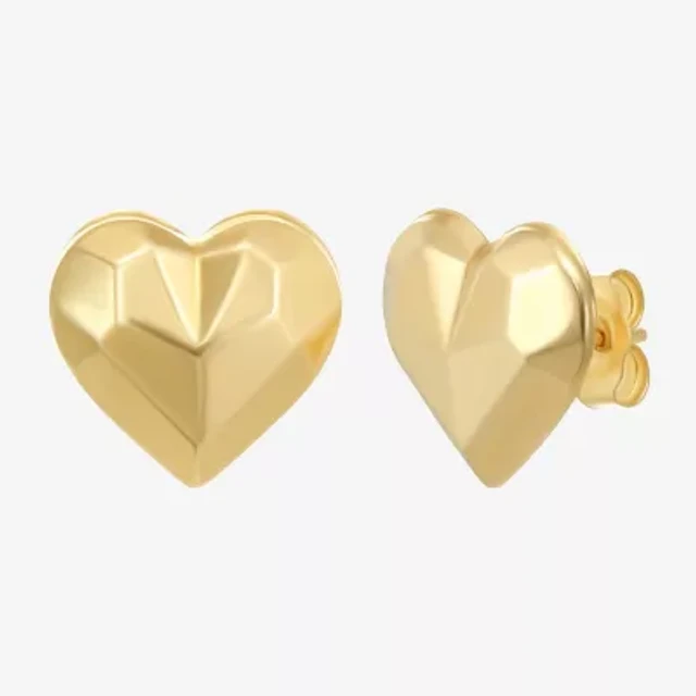 Lab Created White Opal 10K Gold 6.1mm Heart Stud Earrings
