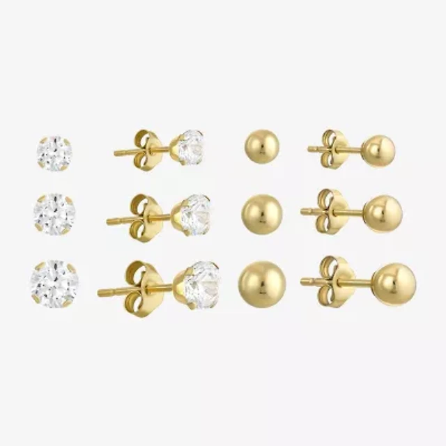Womens Cubic Zirconia 18K Gold Over Silver Sterling Silver Ball 3 Pair Earring Set