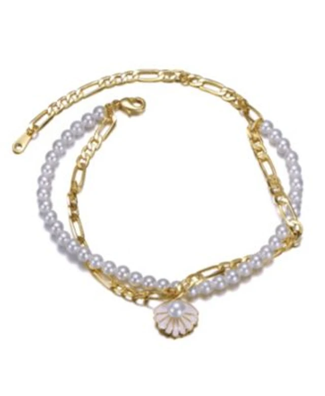 14k Gold Plated Double Layer Pearl Shell Charm Anklet