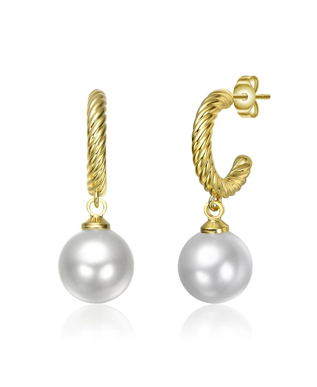 14K Gold Plated with White Pearl Drop Earrings