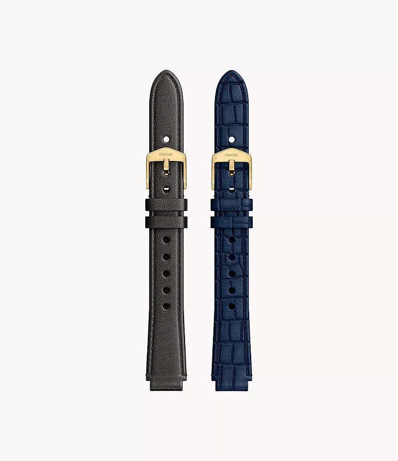 14mm Black and Blue Leather Strap Set