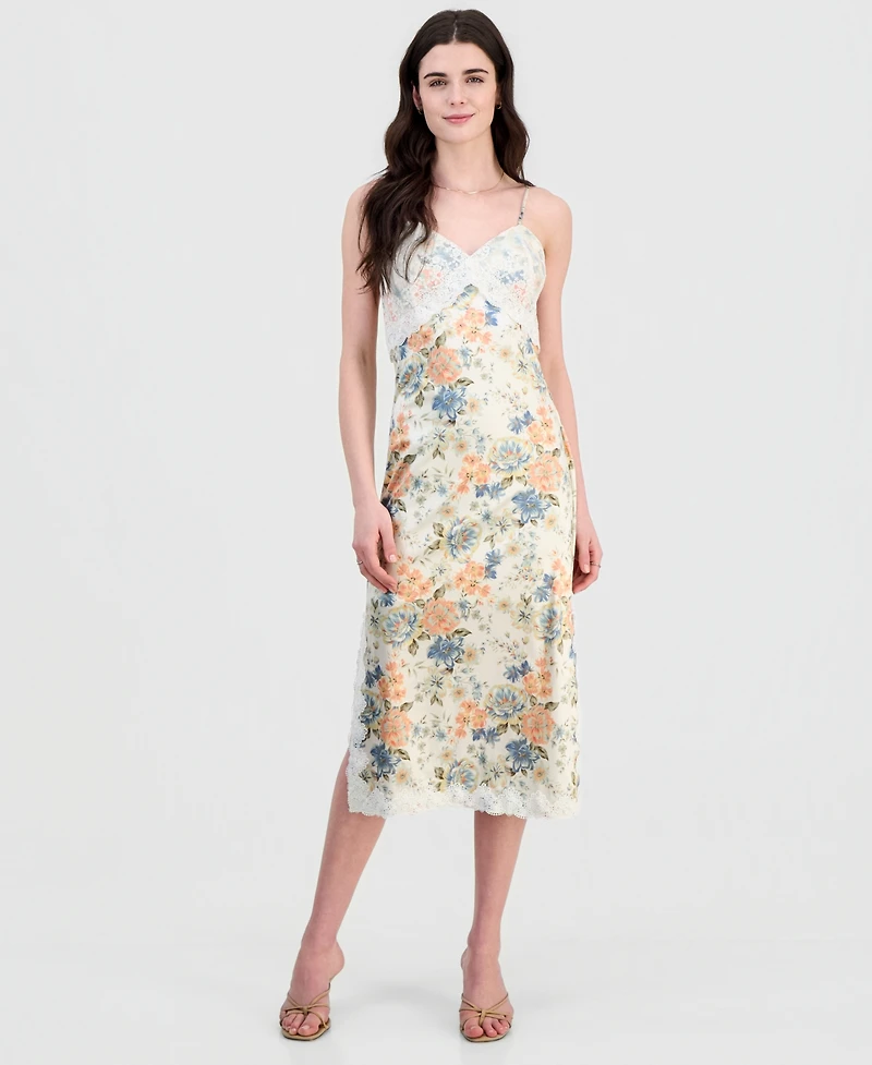 14th Place Juniors' Lace-Trim Floral Midi Dress in San Juan, PR
