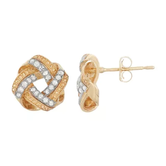 1/5 CT. Natural White Diamond 10K Gold 9.6mm Knot Stud Earrings