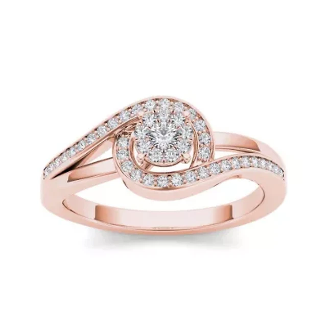 1/5 CT.T.W. Natural Diamond Swirl 10K Rose Gold Engagement Ring