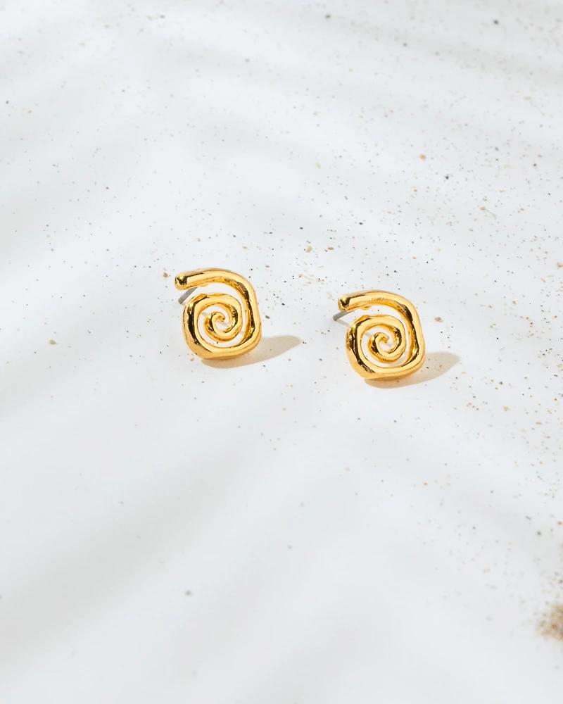Add a little swirl of sunshine to your look with these playful spiral earrings, finished in radiant 16K gold plating. Bold yet perfectly petite, they bring a fun retro twist that instantly brightens any outfit. Details Statement Earrings Push Backing Spiral Design Content + Care 16K Gold Plated Brass While most of our gold plated pieces have a water-resistant coating to keep up with your everyday moments, we recommend removing them during intense activities and cleaning with a soft cloth weekly to keep them in good condition.