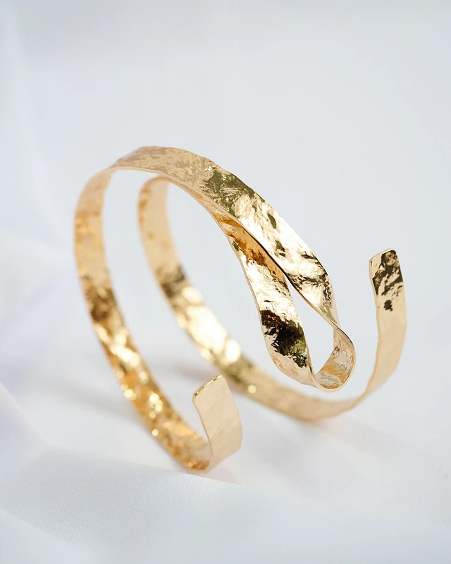 16K Plated Hammered Arm Cuff