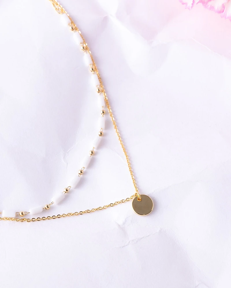 Double the layers, double the charm — this layered necklace pairs luminous 16K gold plating with delicate beaded accents for an effortlessly chic look. Perfect for styling on its own or mixing into your stack, it adds instant glow and playful texture to any outfit.