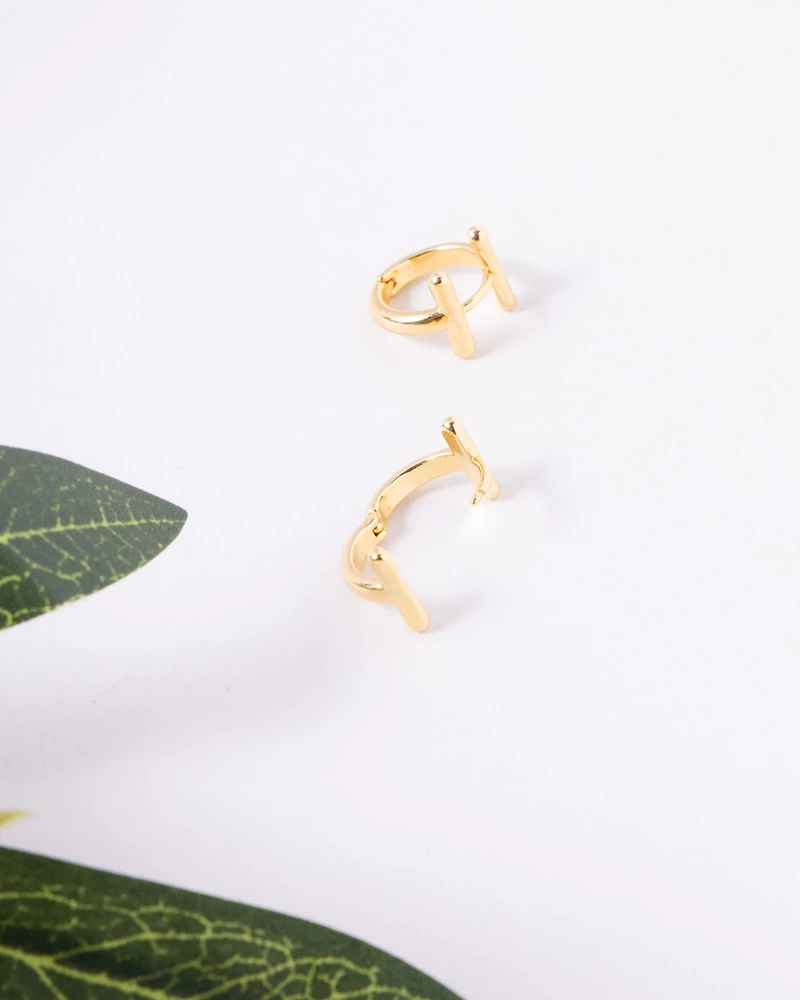 Small in size, big on style — these mini hoops shine in luxe 18K gold plating with a sleek, modern double-bar design. Perfect for everyday sparkle, they’re the tiny statement your ear stack has been waiting for. Details Mini Hoop Earrings Hoop Latch Backing Content + Care 18K Gold Plated Brass While most of our gold plated pieces have a water-resistant coating to keep up with your everyday moments, we recommend removing them during intense activities and cleaning with a soft cloth weekly to keep them in good condition.