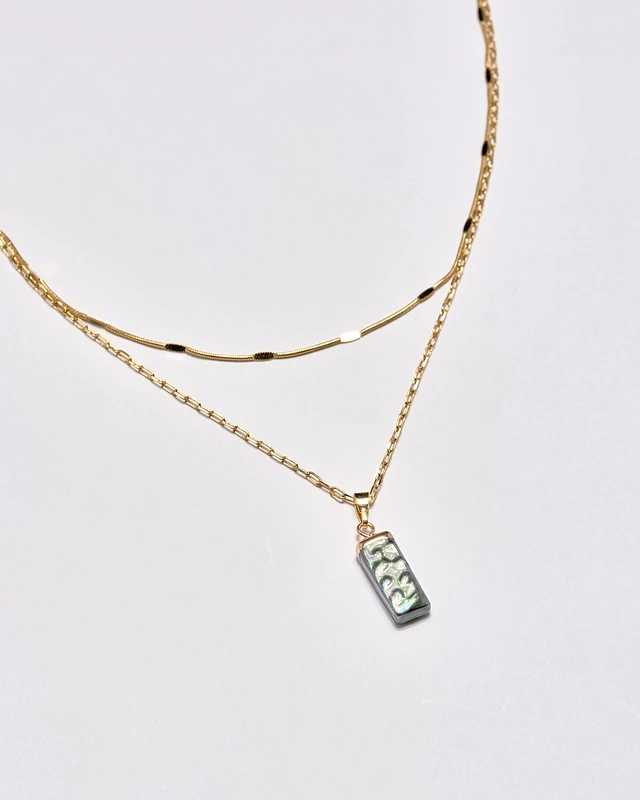 18K Plated Rectangle Stone Necklace