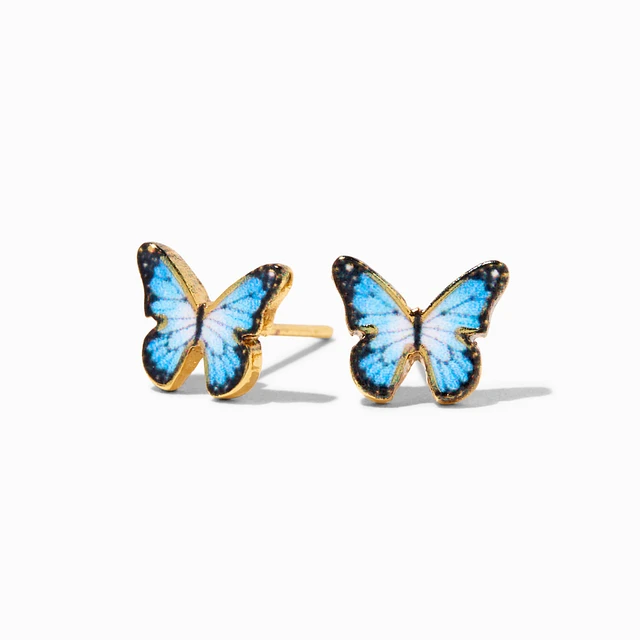 18kt Gold Plated Blue Monarch Butterfly Stud Earrings