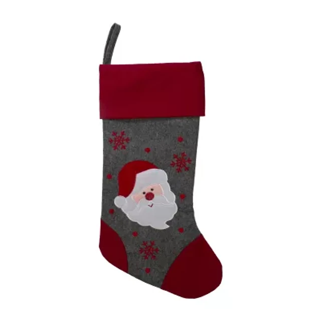 19'' Gray and Red Embroidered Santa Claus Christmas Stocking