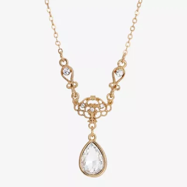 1928 Gold-Tone Womens Crystal Alloy 16 Inch Pendant Necklace