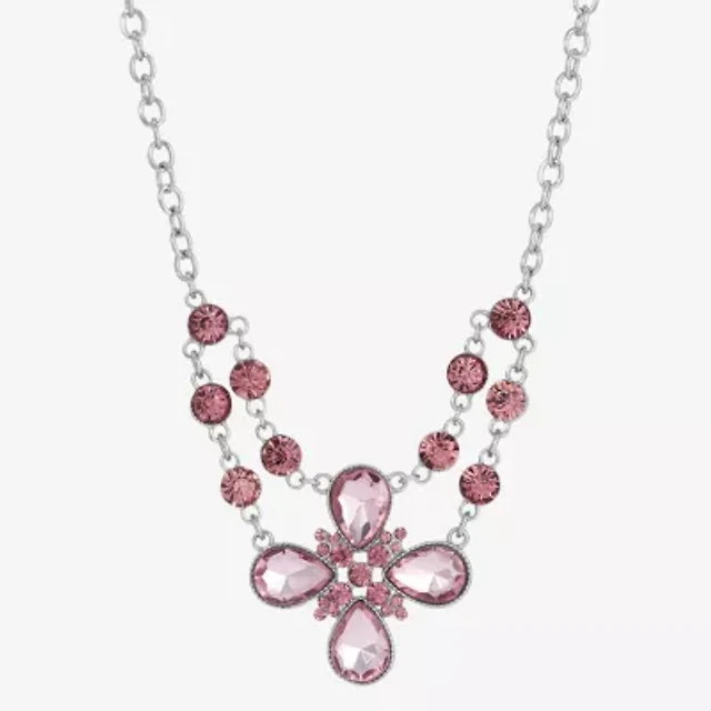 1928 Silver-Tone Womens Pink 16 Inch Beaded Necklace