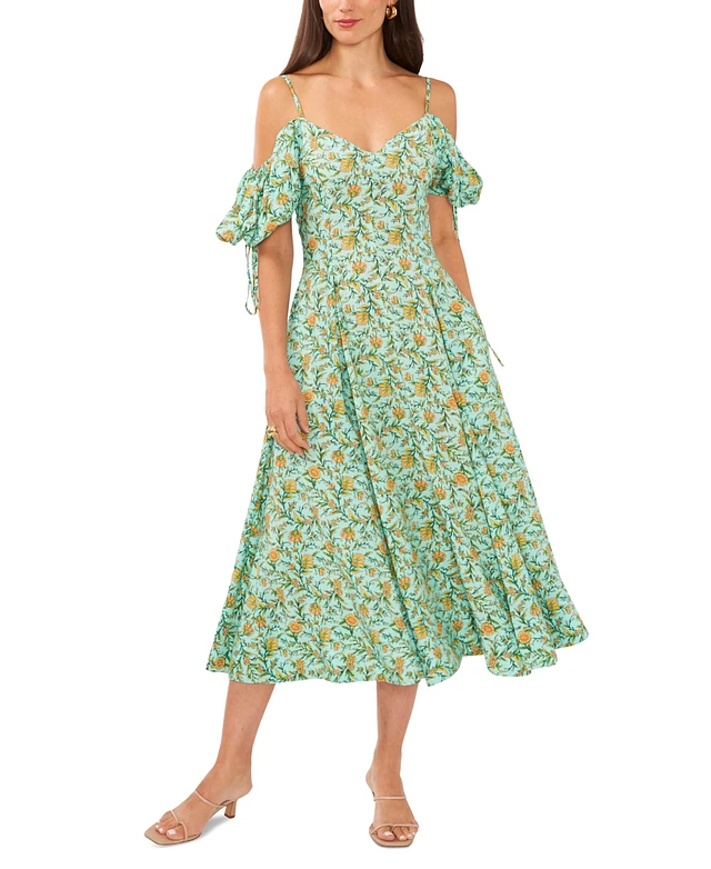 1.state Women's Floral Print Cold-Shoulder Puff Sleeve Midi Dress