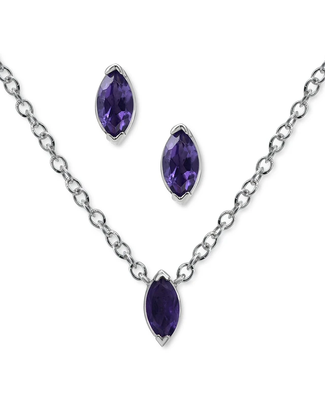 2-Pc. Set Amethyst (1-1/3 ct. t.w.) & Marcasite Pendant Necklace & Matching Stud Earrings in Sterling Silver