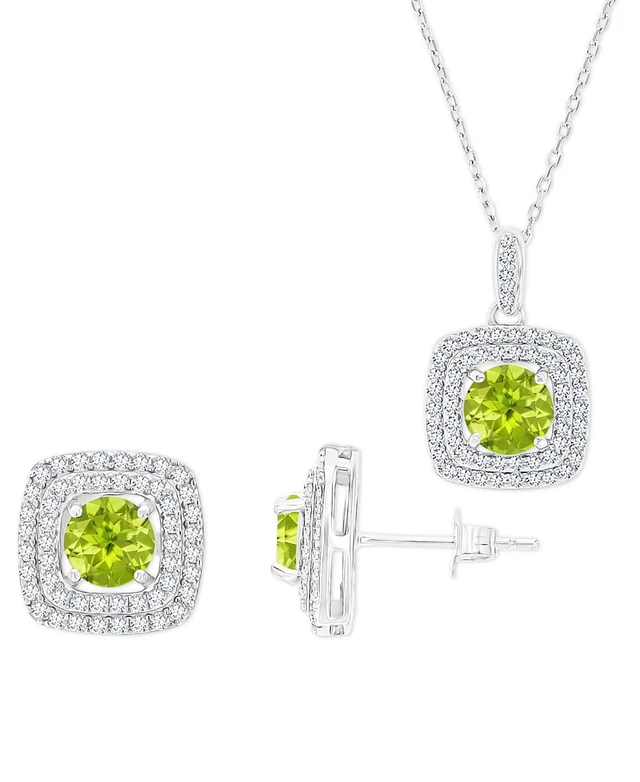 2-Pc. Set Peridot (3-1/4 ct. t.w.) & Lab-Grown White Sapphire (7/8 ct. t.w.) Square Halo Pendant Necklace & Matching Stud Earrings in Sterling Silver
