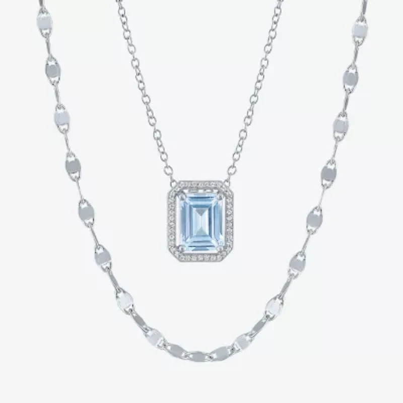 Crafted from Sterling Silver, this women's 2-piece birthstone set includes a necklace with a captivating pear-shaped Lab-Created gemstone representing the month. It's framed by sparkling Lab-Created White Sapphire accents and suspended from an adjustable chain for the perfect fit. The set is complemented by a second necklace, creating an effortlessly layered look.