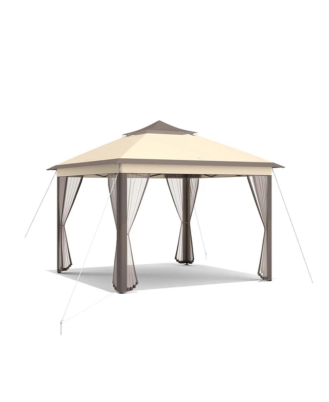 Outsunny 11' x 11' Pop Up Gazebo Outdoor Canopy Shelter with 2-Tier Soft Top, and Removable Zipper Netting, Event Tent with Large Shade, and Storage B