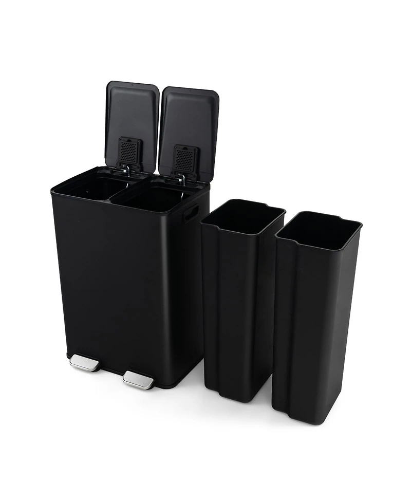 Organize waste disposal with this 2 x 8 Gallon Dual Compartment Trash Can, designed to separate recyclables and trash effortlessly. Featuring two 8-gallon compartments, this trash can helps streamline waste sorting in your kitchen, office, or any multi-use area. The compact design is perfect for smaller spaces, while the durable construction ensures long-lasting use. The lids keep odors contained, making it both functional and hygienic. Ideal for households or busy spaces, this dual compartment trash can makes waste separation easy and efficient.