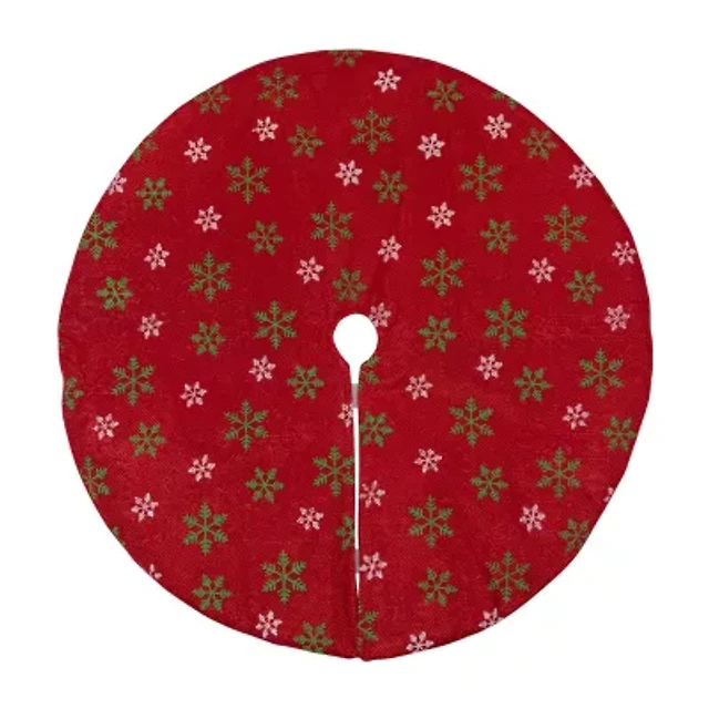 20'' Metallic Red with Green and White Snowflakes Mini Christmas Tree Skirt