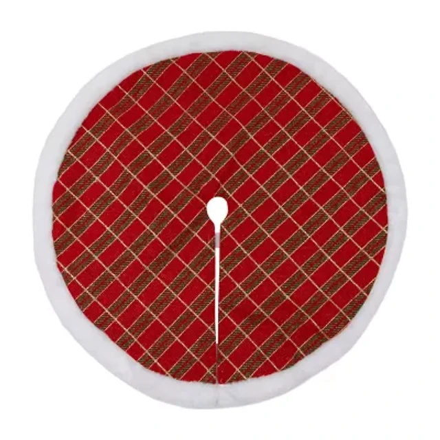 Northlight 48" Red and Green Plaid Rustic Woodland Christmas Tree Skirt with Green Trim
