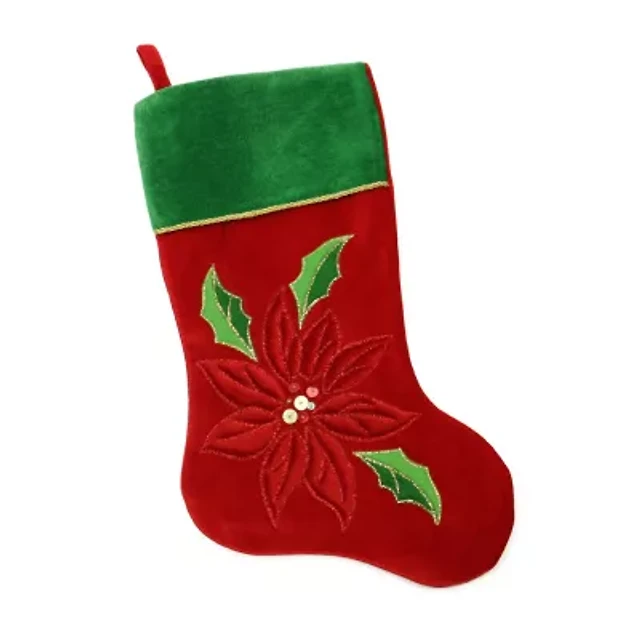 20'' Red and Green Velveteen Sequined Poinsettia Christmas Stocking