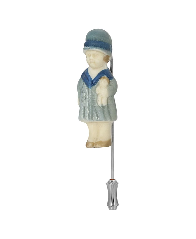 2028 Gold-Tone Pink Long Stem Genuine Porcelain Rose Pin